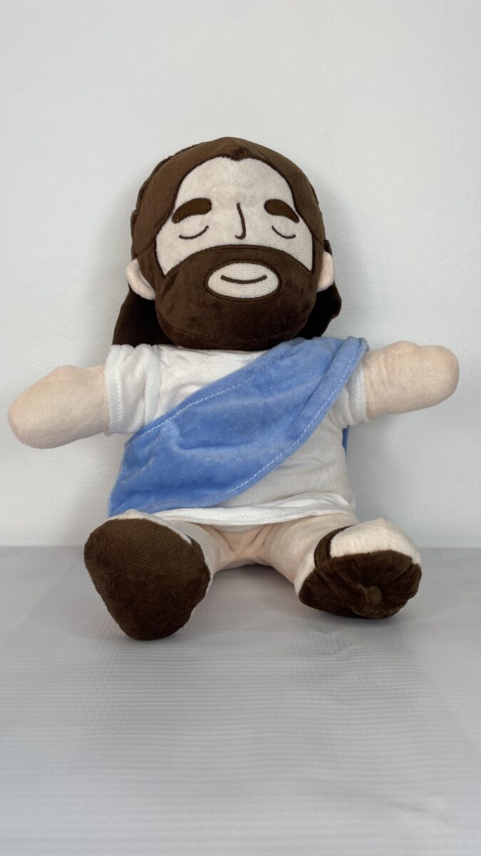 ¡Hola! Soy el peluche de Jesús, tu futuro compañero de abrazos y confort. Estoy diseñado para ofrecerte más que ternura; con mi suave cuerpo y la calidez de mi diseño, te brindaré consuelo en momentos de soledad, insomnio y tristeza. Cuando me abraces, sentirás mi corazón latir y mi suave respiración, recordándote que nunca estás solo.