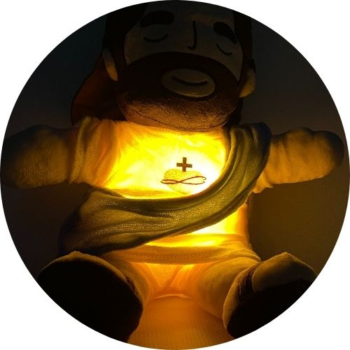 Nuestros peluches de Jesús están diseñados para ofrecer más que un simple abrazo. Con su capacidad única de simular un latido y un suave movimiento de respiración, son tu compañero perfecto para aquellos momentos de soledad, insomnio y tristeza. Cada peluche es una fuente de consuelo, recordándote que no estás solo en tu viaje.